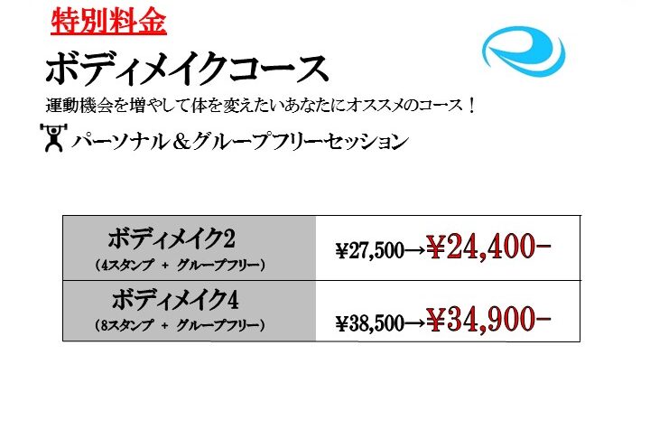 ●ボディメイク4 パーソナル月4回+グループフリー