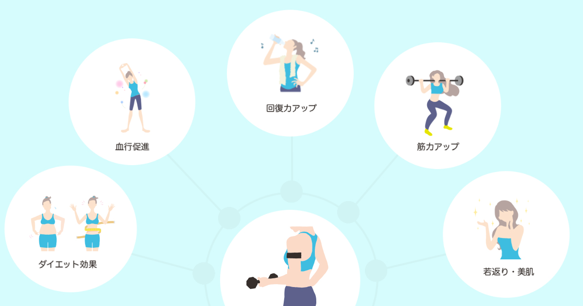 この過程で酸素や栄養が筋肉や組織に効率よく供給され、疲労回復が早くなり、冷え性やむくみの改善効果も期待できます