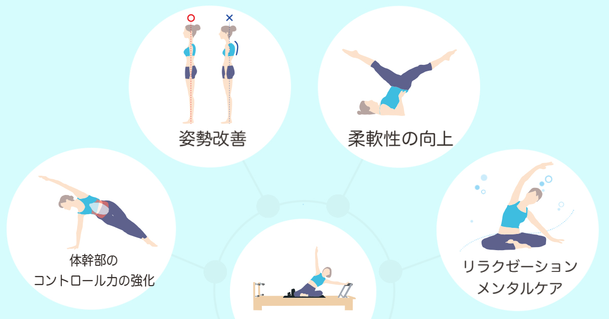 - ピラティスは、インナーマッスルを強化し、体幹の安定性を高めることで美姿勢と身体機能を改善します。これにより、バランスや動作効率が向上し、腰痛などの予防にも効果があります。