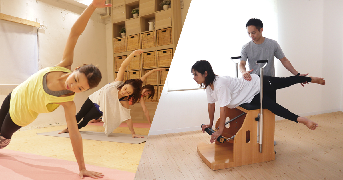 ピラティスには、マットのみで行うピラティス(マットピラティス)と、リフォーマーやチェアなどのマシンを使ったピラティス(マシンピラティス)があります。