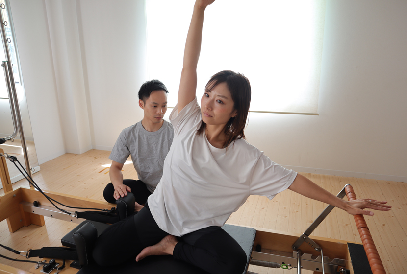 マシンピラティスは、初心者にはサポートといて、上級者には負荷として使うことができます。マットピラティスではできない魅力です。
