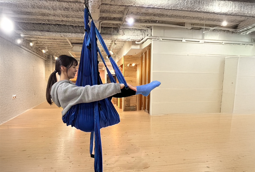 シルクサスペンションは、心地よい揺れの中でリラックスした状態を作り出すことができるため、ストレス解消にも効果的です。体をシルクに預けて脱力することで、日常の緊張やストレスを和らげ、心も体もリフレッシュさせることができます。このような深いリラクゼーションが、心身のバランスを整える手助けをします。